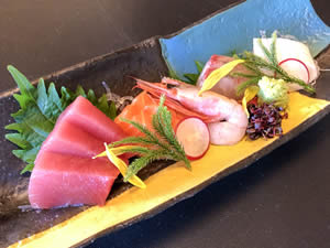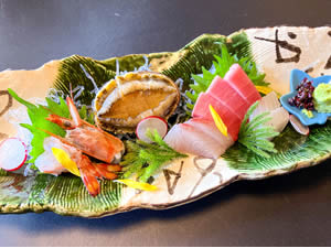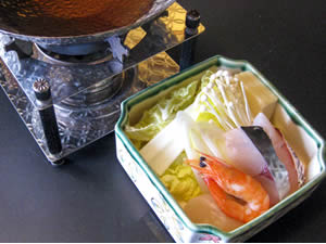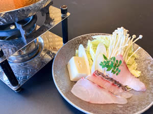 こだわり懐石。飛騨牛、目抜煮付け、海鮮鍋、お造り5種。