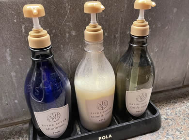 女性の大浴場には、微柑橘の軽やかで柔らかい香りで女性に人気の上質ヘア&ボディケアシリーズ、雪肌精の基礎化粧品など充実のアメニティをご用意しております。